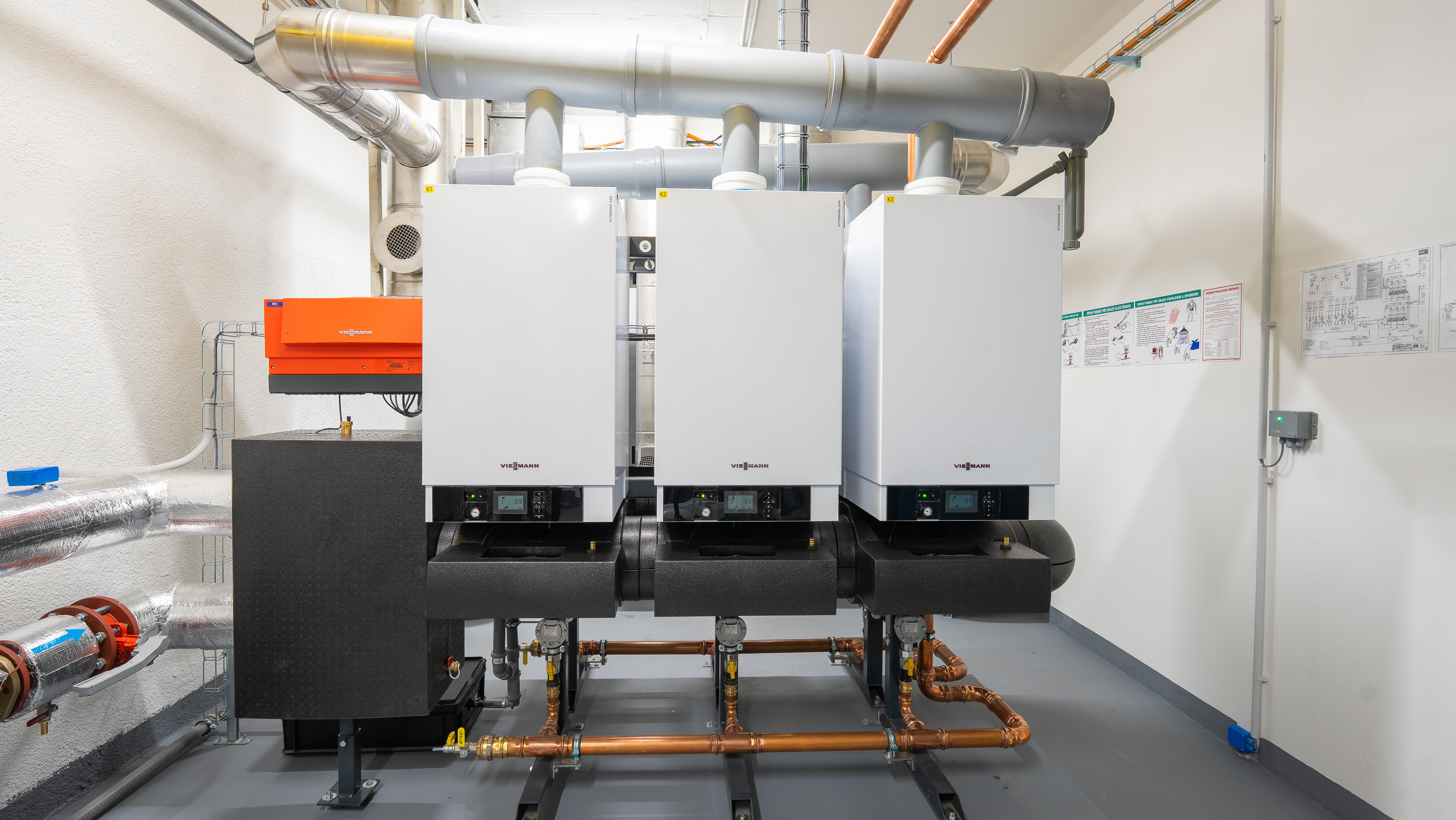 Pro vytápění budovy byla osazena kaskáda kotlů Viessmann Vitodens - 200W-100.